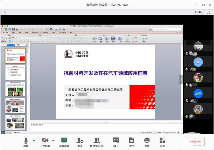 近日,中汽研(天津)汽車工程研究院有限公司(以下簡稱“工程院”)以線上會議形式與中石化集團北京化工研究院、鋼研總院、上海大學等單位,就車用抗菌材料研發及其在汽車上的應用技術,展開了深入技術交流及合作探討,會議由中汽中心首席專家孟憲明博士主持。雙方就車內新型抗菌材料研發、抗菌性能設計以及健康座艙一體化開發技術等方面達成合作共識,并組成車用抗菌材料核心研發團隊,致力于為主機廠及消費者提供全方位的健康座艙研發技術。(張賽)