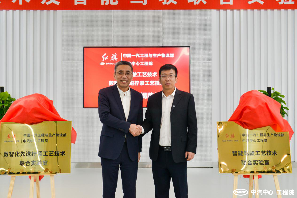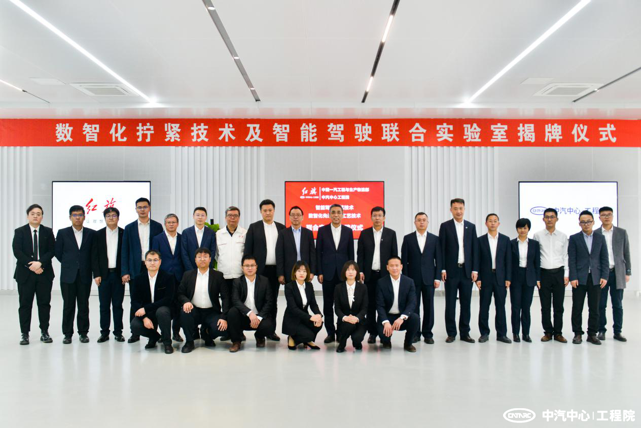 10月29日,中汽中心工程院與一汽集團工程與生產物流部在紅旗繁榮工廠舉行了總裝智能駕駛工藝技術及數智化擰緊工藝技術聯合實驗室揭牌儀式。中汽中心工程院總經理王建海、一汽集團工程與生產物流部總經理畢文權等領導出席儀式并為聯合實驗室揭牌。