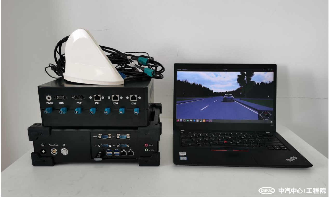 該系統(tǒng)由中汽中心工程院自主研發(fā)。測試時,該系統(tǒng)通過環(huán)境信息仿真設備將場景仿真軟件中創(chuàng)建的虛擬交通環(huán)境映射至真實道路上,基于海量高擬真度數(shù)據(jù)庫,創(chuàng)建“虛實融合”的測試場景,從而驗證被測車輛V2X功能是否能夠正確預警。