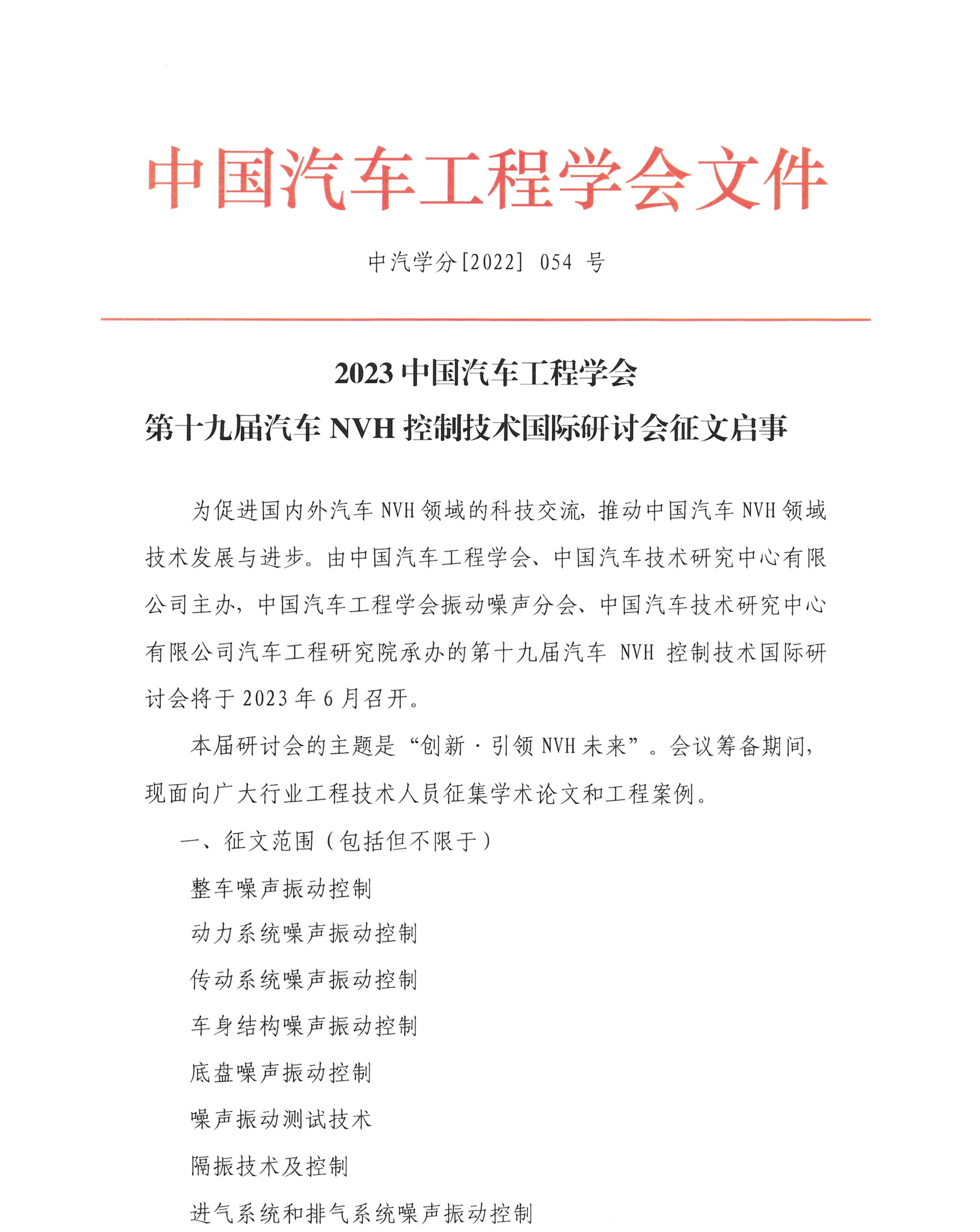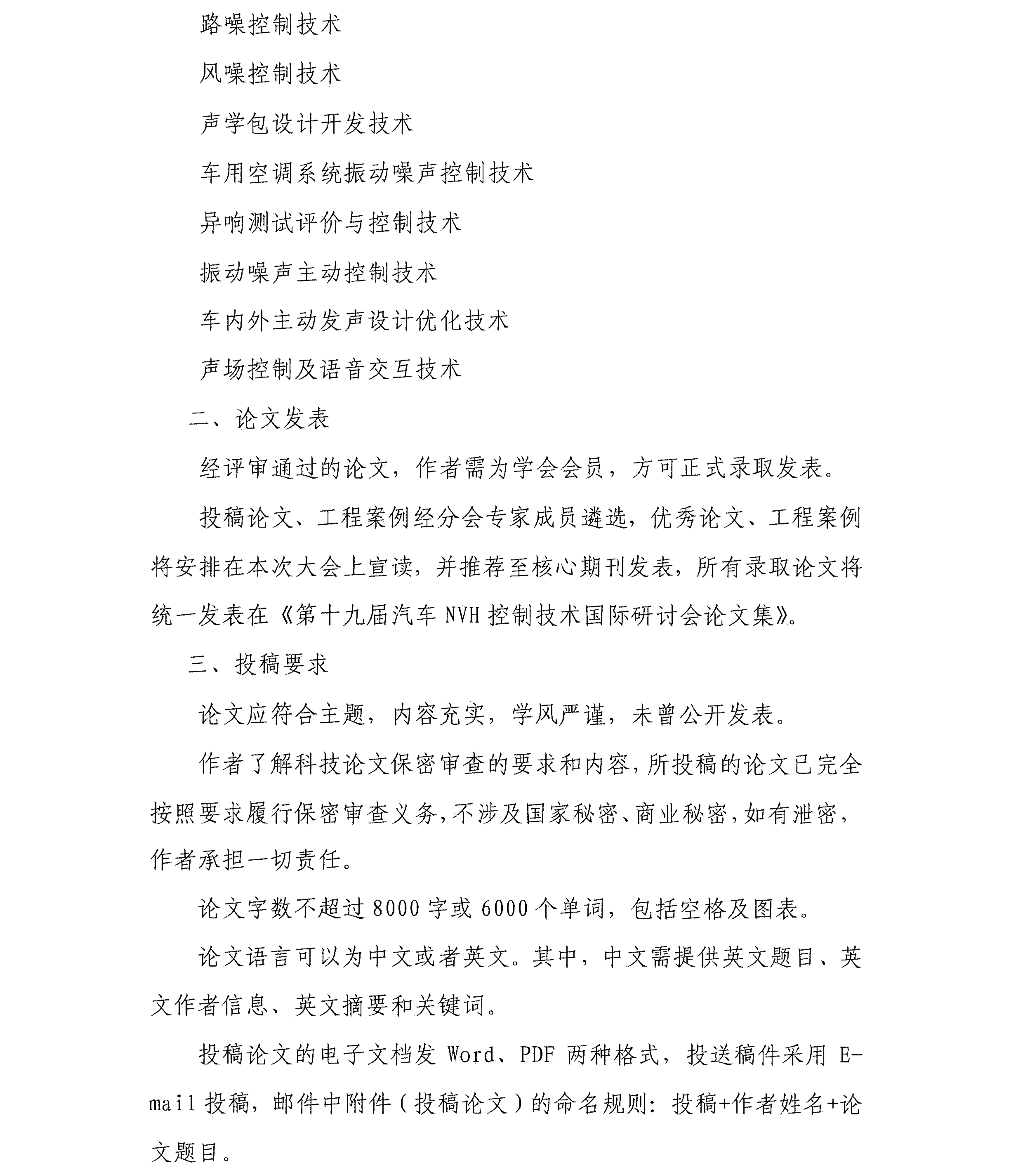 第十九屆汽車NVH控制技術國際研討會會議征文啟事