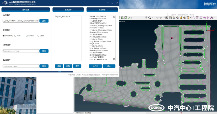 由中汽中心工程院自主開(kāi)發(fā)的人工智能自動(dòng)化網(wǎng)格劃分系統(tǒng)(Auto-Mesher)可以幫助工程師完成大量的預(yù)處理工作,軟件會(huì)智能化地識(shí)別零件的各種特征,自動(dòng)執(zhí)行網(wǎng)格清理、網(wǎng)格劃分質(zhì)量調(diào)整等工作。五一假期前導(dǎo)入數(shù)據(jù),剩下的工作就交給AI吧。