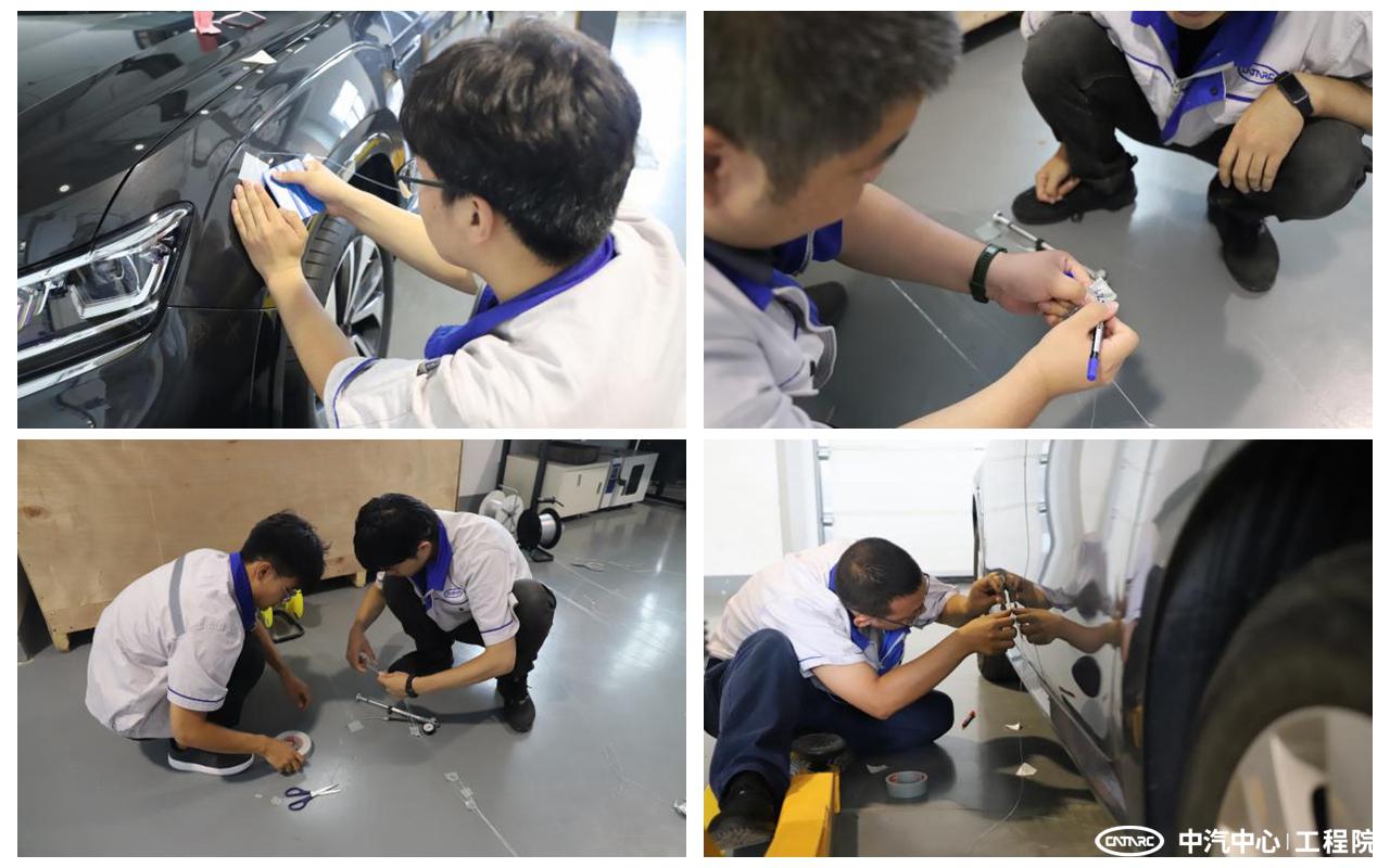 比武活動選擇 2 款車型作為試驗用車,車身左右兩側對稱位置分別劃定 45個測壓點,參賽人員在 45 個點中隨機抽取 10 個完成比武任務。4 人同時進行比武,其他人員提供輔助服務。比武要求在高質量完成測壓片安裝任務的基礎上提升工作效率,并分別制定了相應的考核標準。比武過程嚴格按照實際測試要求進行,包括器材準備、接管、貼片定位、管線排布、通氣性能測試、壓力測試設備連接等全部工作環節。