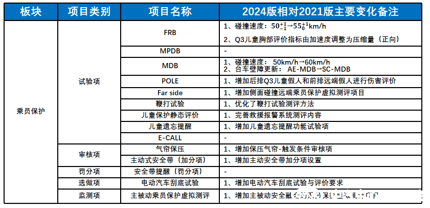 圖1-2024版C-NCAP乘員保護主要變化
