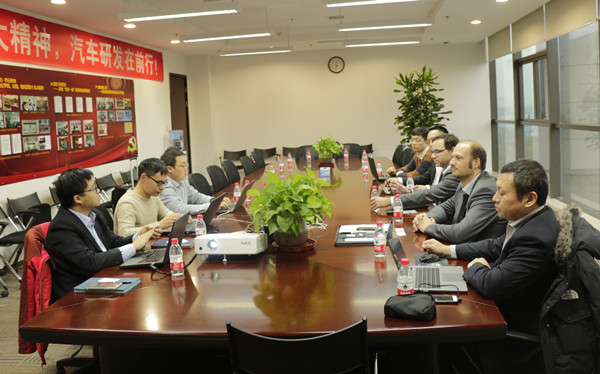 首先,聶彥鑫帶客人一行參觀了工程院各實驗室,并體驗了工程院自主研發的無人駕駛車,Steffen Schmidt總經理對工程院的試驗及研發能力給予高度評價。隨后,雙方舉行了座談會。