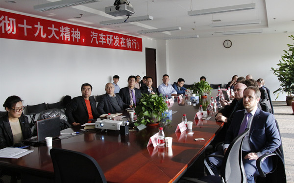 2018年1月8日,捷克新絲綢之路商會主席汪萬明、捷克西波西米亞大學機械工程學院院長Milan Edl、捷克布拉格查理大學特別授權代表Peter Humpolik、捷克體育大學校長Pavel Spacek等一行9人訪問中汽中心汽車工程研究院(以下簡稱“工程院”),中汽中心人力資源部處長楊振林、工程院總工程師李洪亮、工程院特聘專家汽車工程學會會士馬芳武接待了客人一行。