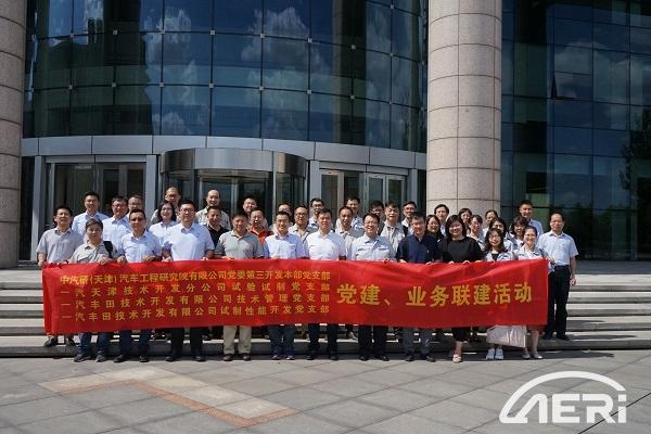 2019年 8 月 16 日,工程院黨委第三開發本部黨支部與一汽天津技術開發分公司(以下簡稱“一汽天津”)試驗試制黨支部,一汽豐田技術開發有限公司技術管理黨支部,一汽豐田技術開發有限公司(以下簡稱“一汽豐田”)試制性能開發黨支部開展黨建、業務聯建活動。工程院黨委書記高繼東、黨委委員戎輝,一汽天津黨委書記賈連云、黨委委員崔振偉,一汽豐田黨委副書記李志鵬,以及各方黨員代表、科室負責人共計 38 人參加活動。