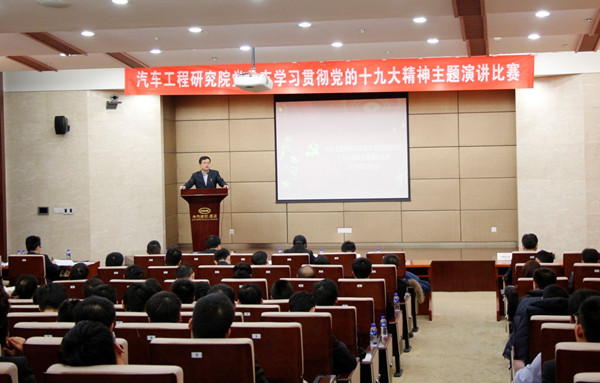 為進(jìn)一步掀起學(xué)習(xí)黨的十九大精神的熱潮,提高黨員學(xué)習(xí)十九大精神的積極性、主動性,2018年3月2日,汽車工程研究院黨總支舉辦了學(xué)習(xí)貫徹黨的十九大精神系列活動之“不忘初心,牢記使命,以黨的十九大精神為指引,勠力同心打造百年老店,將工程院建設(shè)成為引領(lǐng)汽車產(chǎn)業(yè)發(fā)展的世界一流研發(fā)機(jī)構(gòu)”主題演講比賽。工程院全體在津黨員、員工代表共130余人參與活動。比賽活動由院黨總支書記高繼東主持,院黨總支委員馬杰、李洪亮及各支部委員出席并擔(dān)任專家評委。